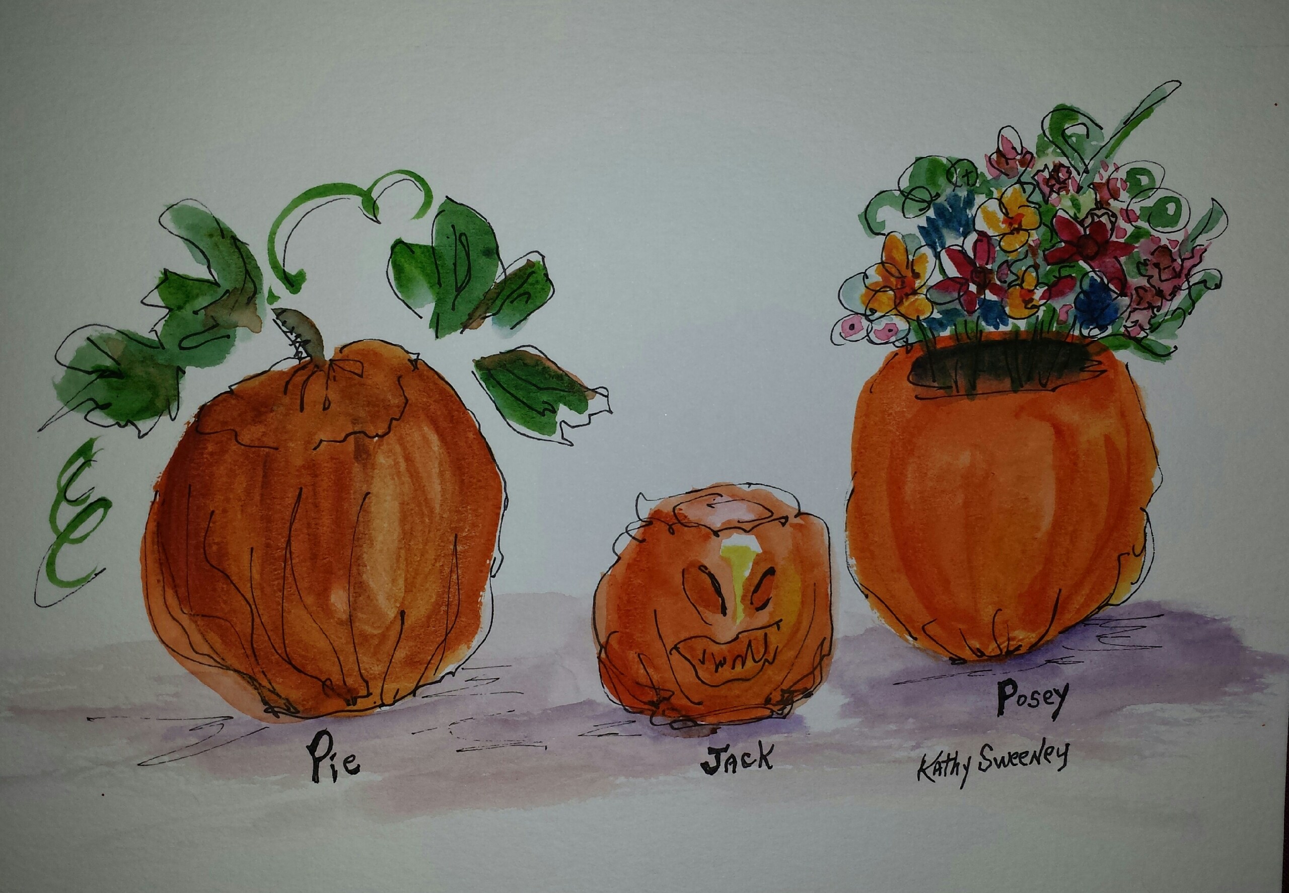 October 2014 Published on October 27, 2014 Leave a Comment These Are Pumpkin Times written by Kathy Sweeney How Do You Pumpkin ?? Click to enlarge and look for the Cross. I place a Cross in all my paintings, hiding them or making them bold. You just never know! Watercolor and Ink Share this:Share Click to share on X (Opens in new window) X Click to share on Facebook (Opens in new window) Facebook Click to share on LinkedIn (Opens in new window) LinkedIn Like Loading... Related