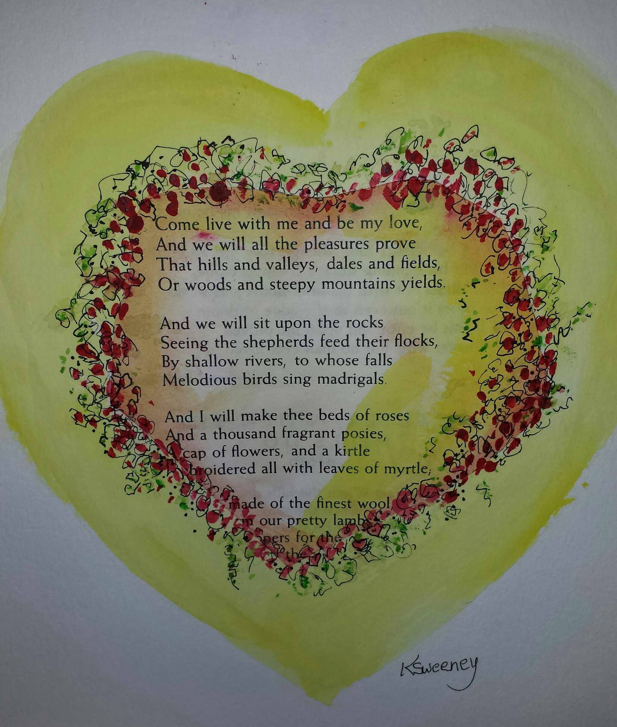 No matter when a couple marries or how long it lasts, true love starts in the heart of a lover. English Renaissance Poet Christopher Marlowe, 1564–1593, who was a dramatist and a contemporary of Shakespeare, wrote “The Passionate Shepherd to his Love” which I have incorporated into the collage in this posting.