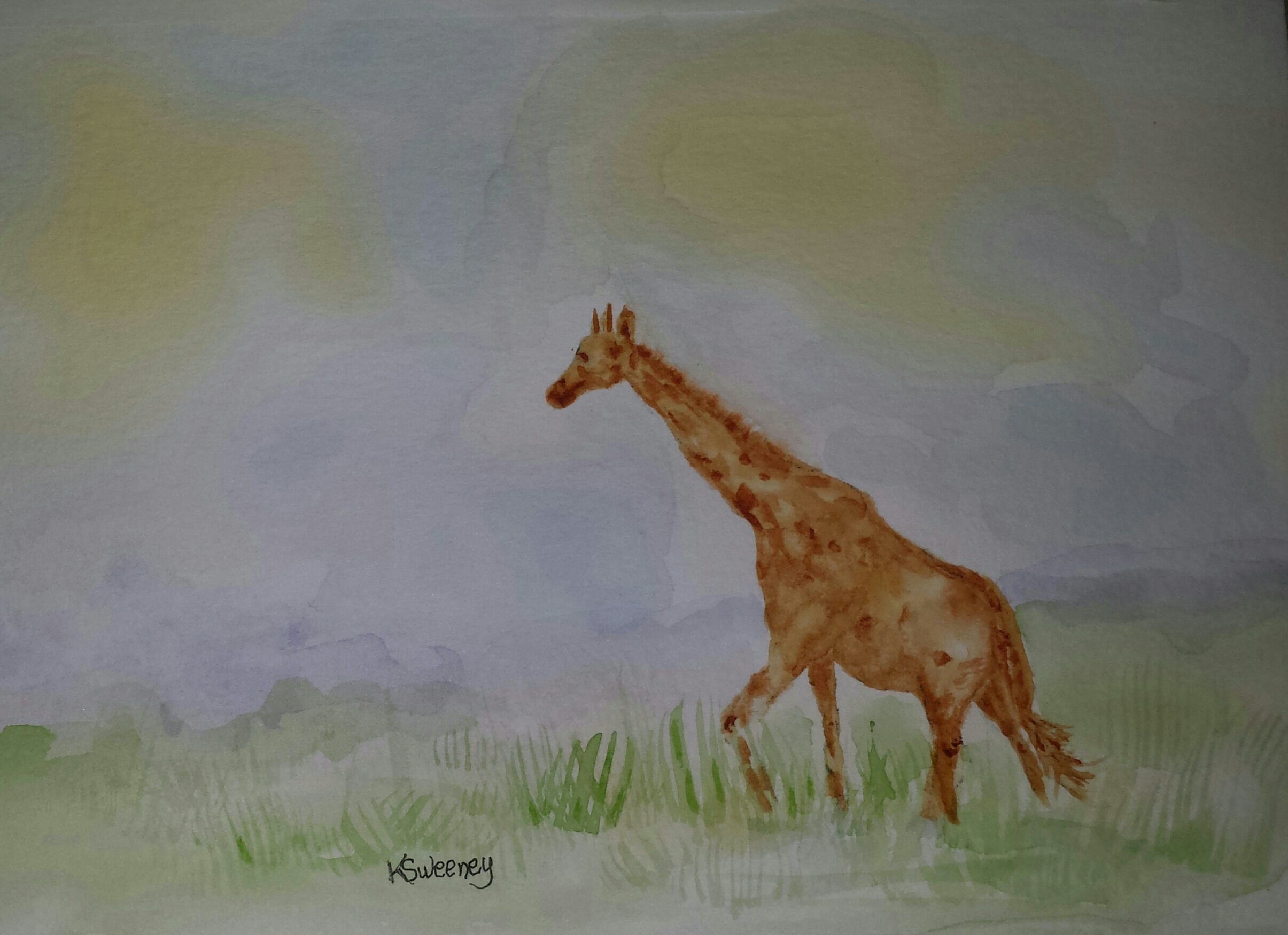 If you can’t fly to Yellowstone Park or San Diego today…sit back and enjoy my watercolor, ‘Walking Tall’, depicting a giraffe in the wild.